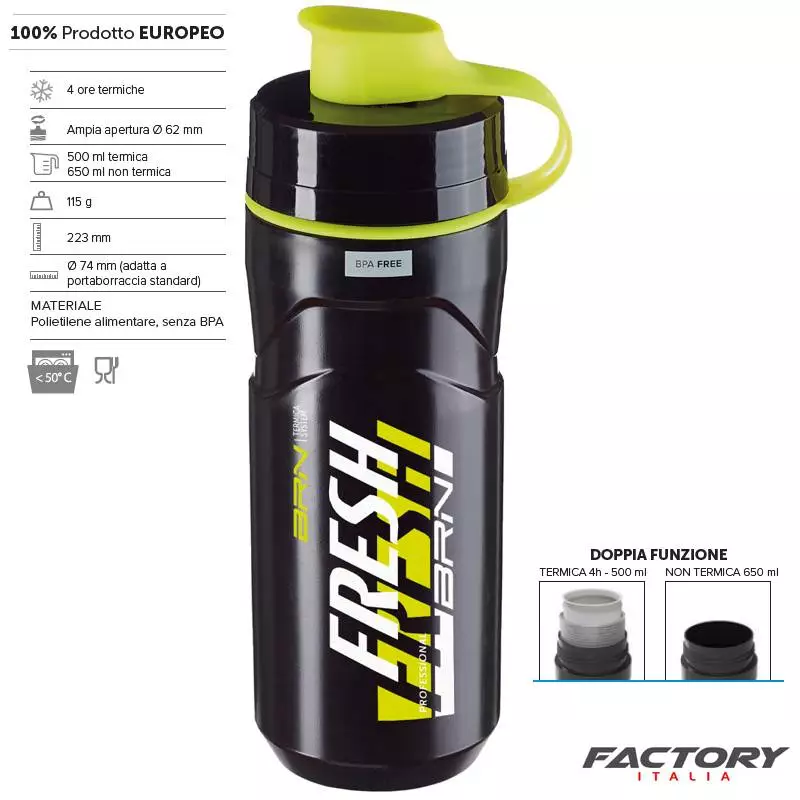 Borraccia Termica BRN Fresh 500 Ml Nera Gialla Fluo