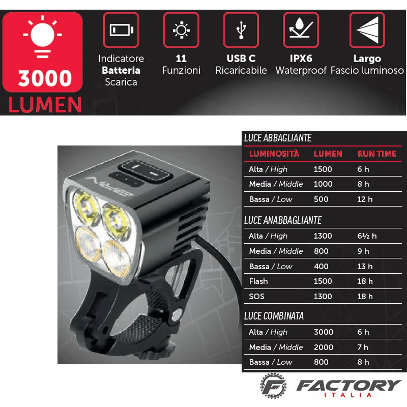 4 super Led, 3000 Lumen