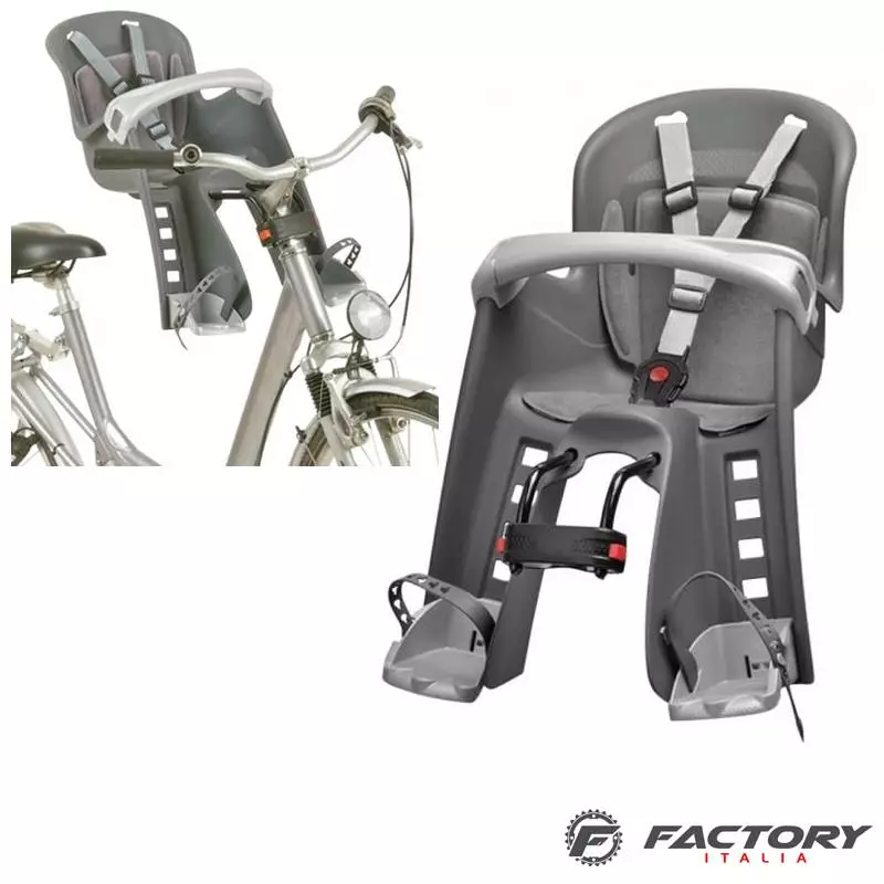 Seggiolino bici bimbo anteriore grigio Bilby con attacco al telaio piantone nero