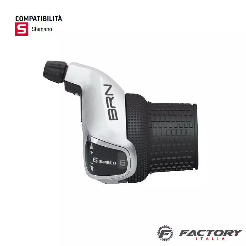 Comando cambio a manopola a 6 velocità indicizzato compatibile con Shimano.