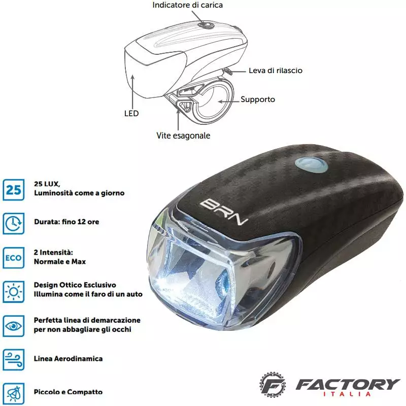 - Fanale anteriore BRN Infinity Carbon – 600 Lumen