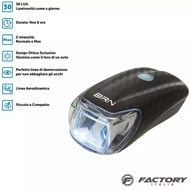 Fanale anteriore BRN Infinity Carbon – potenza 800 Lumen
